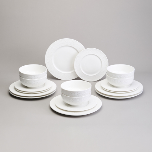 ТМ Lefard представляет Коллекцию посуды из качественного фарфора CAVIER. Белоснежная сверкающая посуда не уступает профессиональной ресторанной посуде по прочности и долговечности. Высокая температура обжига делает посуду термостойкой, гигиеничной и устойчивой к царапинам от столовых приборов. Каждый предмет коллекции украшен неповторимым и очень современным рельефным узором. Уникальный дизайн посуды удобных форм и оптимальных размеров удовлетворит самые изысканные потребности для идеальной сервировки торжественного стола и стола на ежедневный завтрак, обед или ужин. Коллекция универсальна, и станет оптимальным выбором для домашнего использования. Посуда легка в уходе, можно использовать в микроволновых печах, духовых шкафах, мыть в посудомоечной машине.