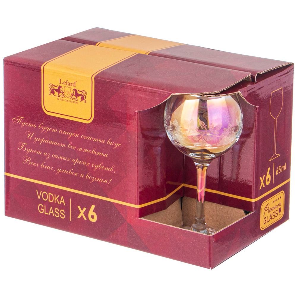 -Радужный блеск: Рюмки выполнены с эффектом радужного переливания, который создает неповторимую атмосферу праздника и элегантности.