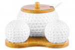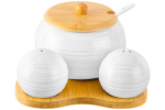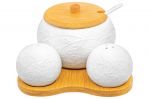 Набор - сахарница 300 мл 16*10*11 см "Снежинки" с ложкой+солонка+перечница на дер.подставке