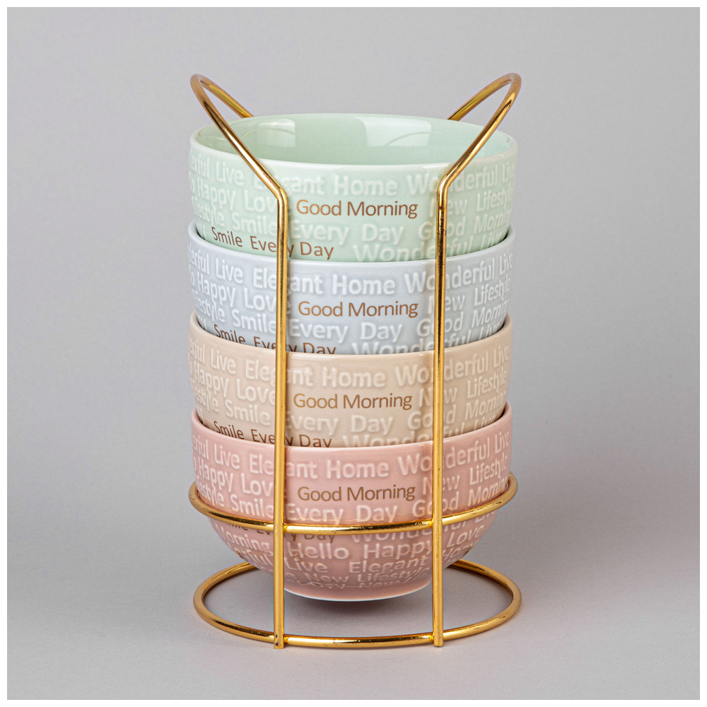 НАБОР САЛАТНИКОВ LEFARD "GOOD MORNING" НА МЕТАЛЛ. ПОДСТАВКЕ 4 ШТ. 11.5*6 СМ 330 МЛ МИКС ЦВЕТОВ