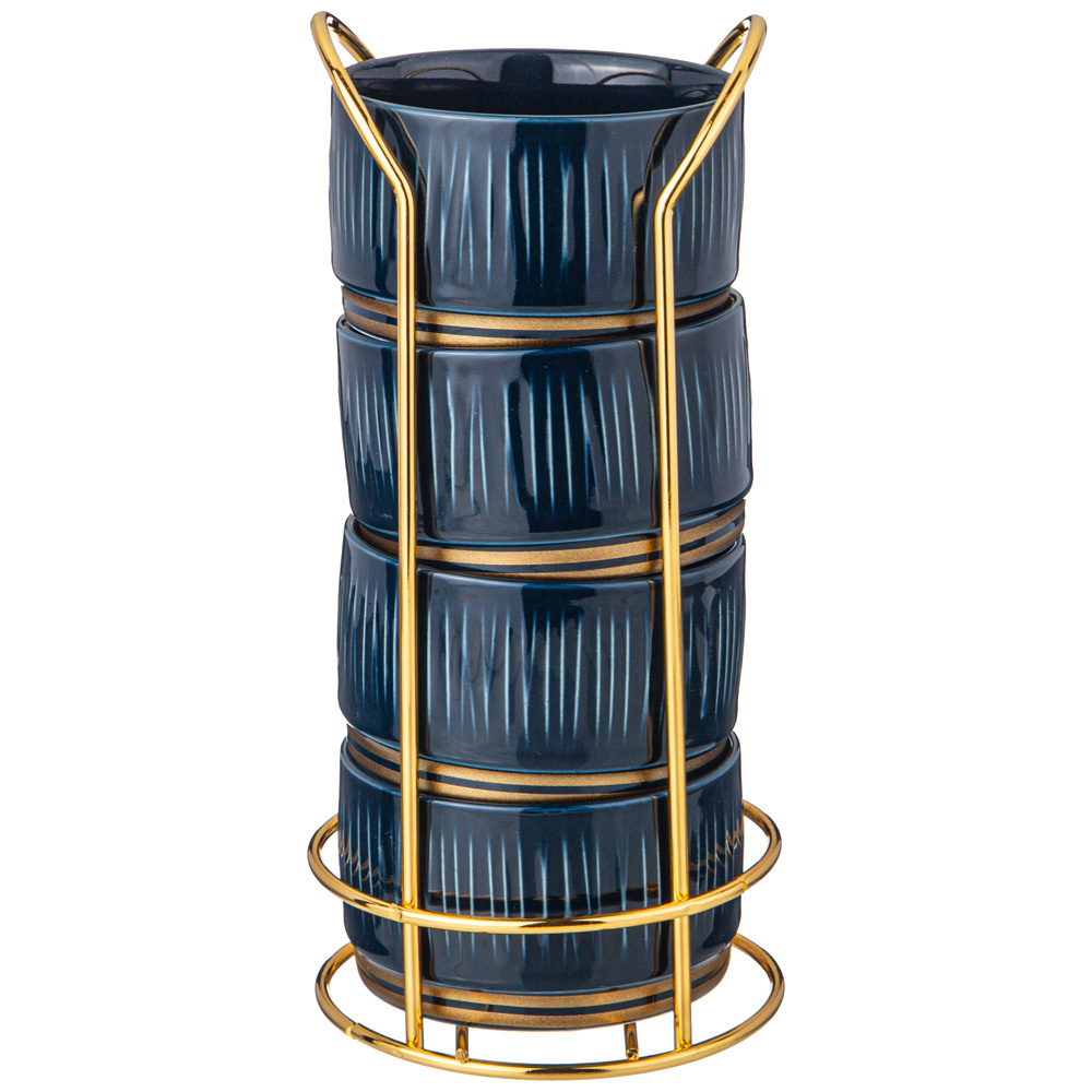 НАБОР САЛАТНИКОВ LEFARD "HERBAL" НА МЕТАЛЛ. ПОДСТАВКЕ 4 ШТ. 9*5 СМ 230 МЛ СИНИЙ (КОР=12НАБ.)