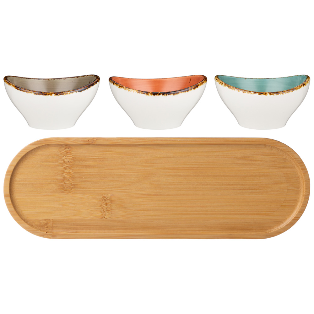 Комплектность: подставка 27*9.2*5.3CM, 3 салатника 9*9*4.5/4 см 100 мл