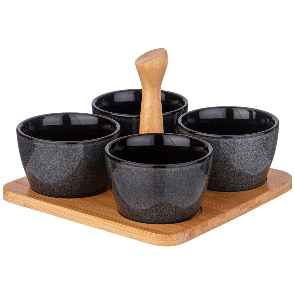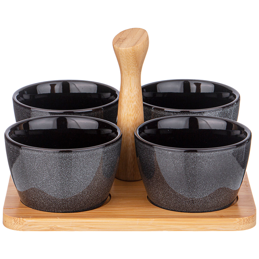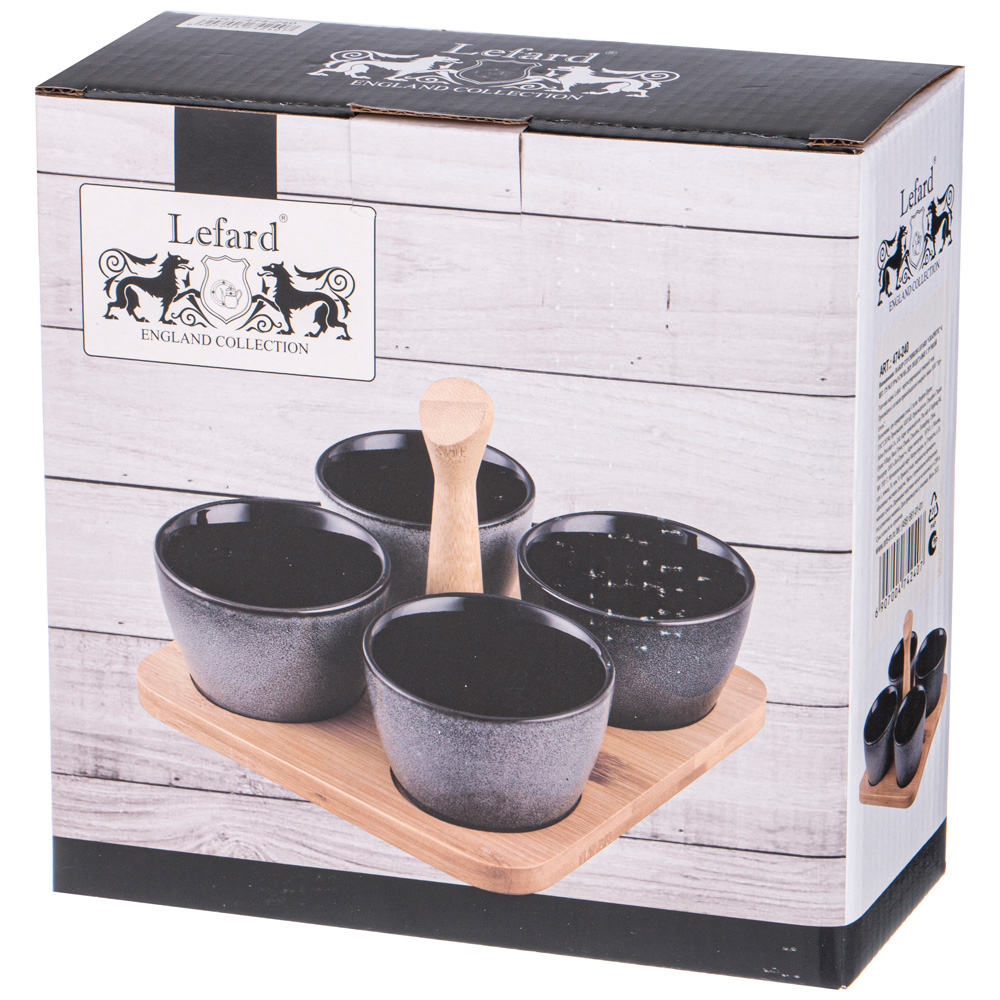 НАБОР СОУСНИКОВ LEFARD "GRAPHITE" 4 ШТ. 175 МЛ 19*6.5 СМ НА ДЕР. ПОДСТАВКЕ С РУЧКОЙ (КОР=16НАБ.)