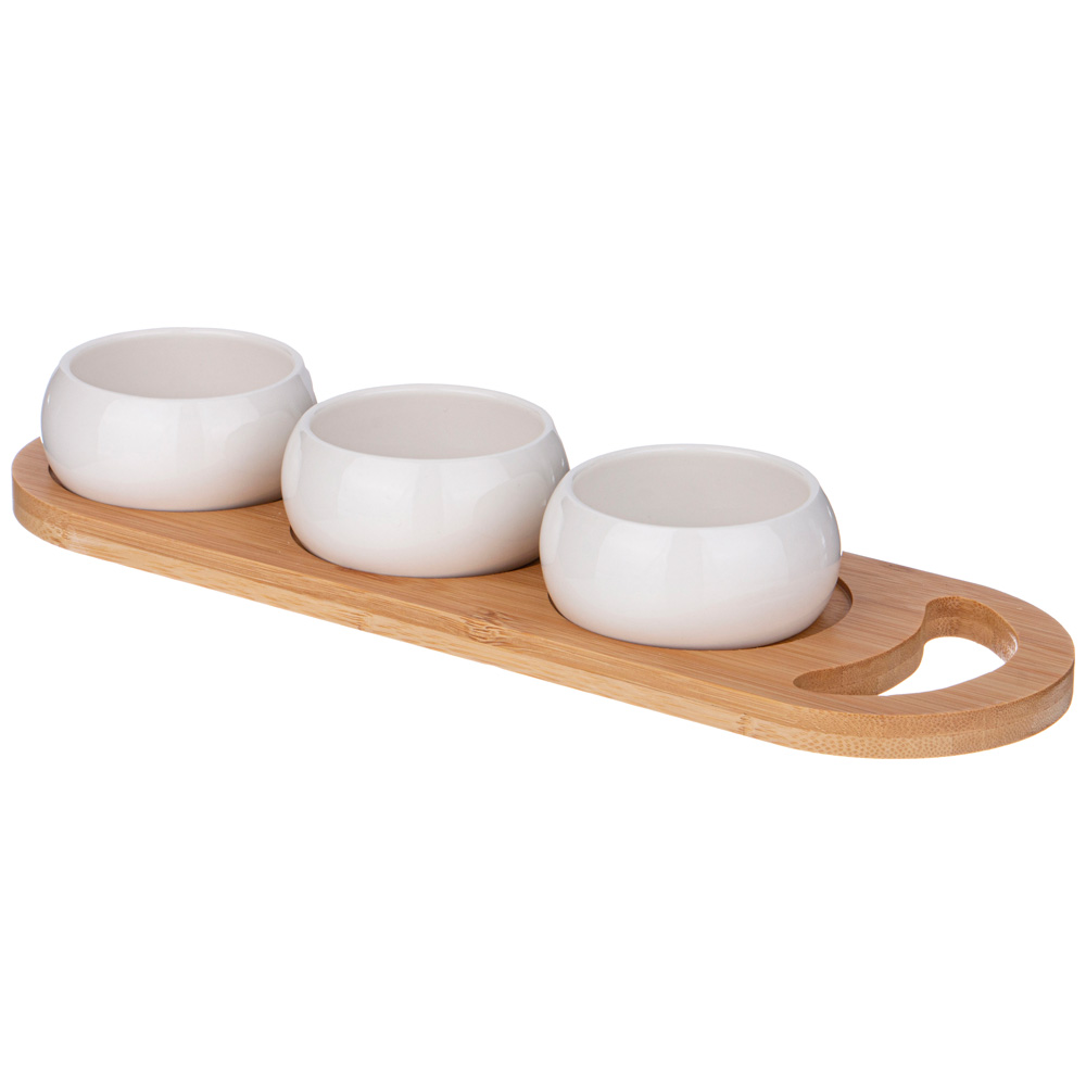 НАБОР СОУСНИКОВ LEFARD "NATIVE" 3 ШТ. НА ДЕР. ПОДСТАВКЕ С РУЧКОЙ 33,3*10,4*1,2 СМ (КОР=24НАБ.)