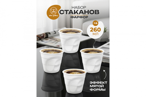 Набор 4 стаканов от бренда Elan Gallery "Авангард" – это уход от стандартных форм и привычных рамок. Посуда фигурной формы выполнена из белого фарфора. Сочетание забавной формы и качественного материала подчеркнёт креативность, чувство юмора и оригинальный вкус своего владельца. Размер каждого – 10х10х11 см, объём – 380 мл. Фарфоровые изделия имеют форму, имитирующую мятые стаканчики. Комплект поможет провести множество уютных чаепитий или приятных завтраков с любимым кофе, ведь фарфоровая посуда подходит для горячих и холодных напитков. Пейте из них тёплый чай, глинтвейн, либо охлаждённый сок, лимонад и даже обычную воду. В отличие от керамики материал не впитывает цвет напитков и легко отмывается, поэтому многоразовые стаканы сохранят свою белизну. Подходят для оригинальной подачи алкогольных и безалкогольных коктейлей на празднике или вечеринке. Можно использовать для необычной сервировки десерта, например, мороженого. А как красиво будут выглядеть в кофейных стаканчиках капучино или латте! Не рекомендуется применять абразивные моющие средства. Беречь от механических повреждений и резких перепадов температур. Можно использовать в микроволновой печи и посудомоечной машине. Приготовьте в микроволновке кекс по быстрому рецепту, такая подача никого не оставит равнодушным. Поставляются в стильной картонной коробке с логотипом бренда. Станут оригинальным подарком на праздник или сюрпризом без повода. Благодаря красочной коробочке не понадобится дополнительная подарочная упаковка. В ассортименте бренда Элан Галерея представлено много стильных товаров для дома, а также всё необходимое для вашей кухни. Разбавьте повседневность лёгкой иронией и сделайте вызов всему скучному и обыкновенному!