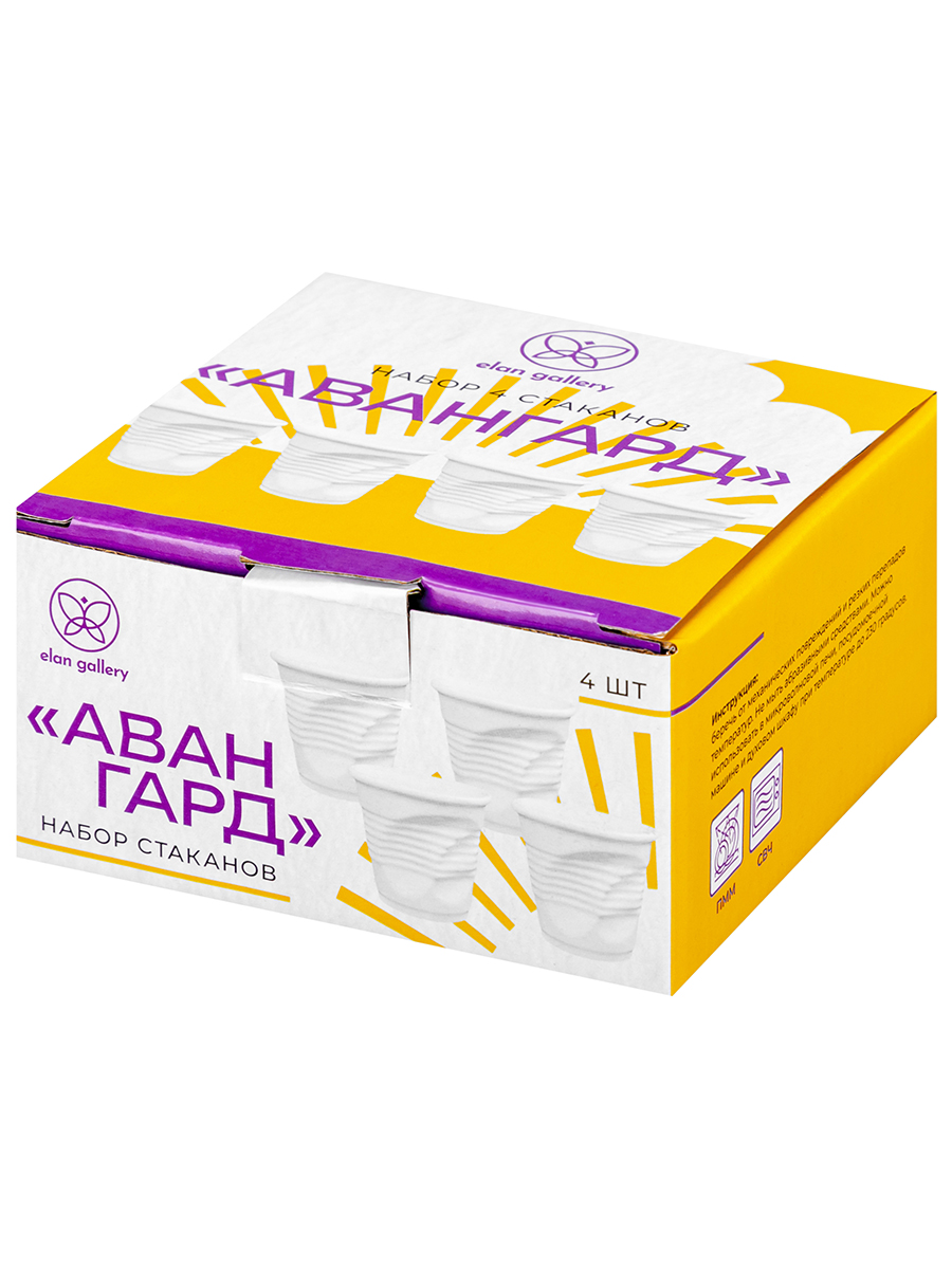Набор 4 стаканов от бренда Elan Gallery "Авангард" – это уход от стандартных форм и привычных рамок. Посуда фигурной формы выполнена из белого фарфора. Сочетание забавной формы и качественного материала подчеркнёт креативность, чувство юмора и оригинальный вкус своего владельца. Размер каждого – 6,5х6,5х6 см, объём – 80 мл. Фарфоровые изделия имеют форму, имитирующую мятые стаканчики. Комплект подходит для горячих и холодных напитков. Особенно оценят любители кофе, ведь маленький объём удобен для подачи эспрессо. В отличие от керамики материал не впитывает цвет напитков и легко отмывается, поэтому многоразовые стаканы сохранят свою белизну. Подходят в роли барных стопок для оригинальной подачи алкогольных настоек, коньяка и водки на празднике или вечеринке. Можно использовать как рюмки и шоты в домашнем баре. В посуде с креативным дизайном будет необычно смотреться всё – от ликера до текилы. Не рекомендуется применять абразивные моющие средства. Беречь от механических повреждений и резких перепадов температур. Можно использовать в микроволновой печи и посудомоечной машине. Поставляются в стильной картонной коробке с логотипом бренда. Небольшие стопочки станут оригинальным подарком на праздник или сюрпризом без повода. Благодаря красочной коробочке не понадобится дополнительная подарочная упаковка. В ассортименте бренда Элан Галерея представлено много стильных товаров для дома, а также всё необходимое для вашей кухни. Разбавьте повседневность лёгкой иронией и сделайте вызов всему скучному и обыкновенному!