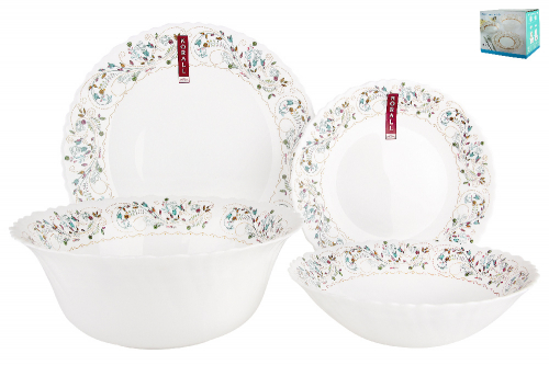 Состав: тарелка 24см (6шт), тарелка 19см (6шт), миска 700мл/19см (6шт), салатник 1700мл/23см (1шт)