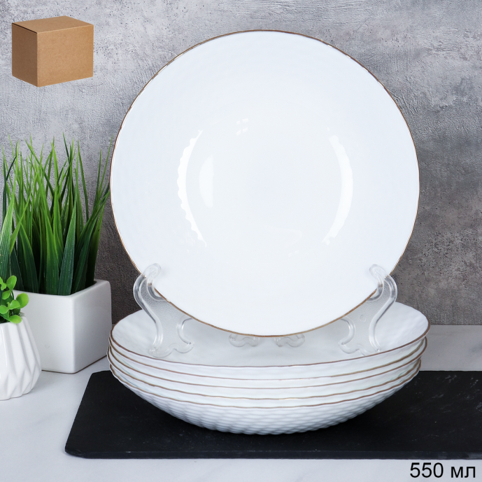 Набор суповых тарелок 6 штук 550 мл 203 мм Золото / BZSP80 (White Gold ) /уп 8/ 737602