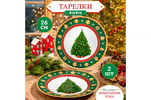 Набор 2 тарелок из серии «Новогодняя ёлка» от Elan Gallery предназначен для эстетичной сервировки вашего стола. Размер каждого изделия – 26х26х2 см. Выполнены из фарфора нового поколения new bone china, сочетающего в себе изящность и высокую прочность. Такие изделия легко отмываются, поэтому сохраняют привлекательный вид и практичны в использовании. Плотная структура материала позволяет посуде дольше сохранять температуру блюд и напитков. От других видов костяного фарфора new bone china отличается большей экологичностью в производстве. Поверхность украшена широкой цветной окантовкой, изображением пушистой наряженной ёлочки, узором из снежинок и имбирных пряников. Тарелки подойдут для подачи рыбных и мясных блюд, а также разнообразных закусок. Красиво подайте на ней курицу, рыбу и любое другое мясо. Используйте для сервировки салатов, сырной нарезки, овощей и фруктов, чтобы угостить большое количество гостей. На сервировочном блюде удобно разместить кусочки торта или пирога, конфеты, зефир, а также другие десерты и сладости. Подойдут для красивой подачи суши, роллов или бутербродов на завтрак. Не рекомендуется применять абразивные моющие средства. Подходят для использования в посудомоечной машине и микроволновой печи. Поставляются в дизайнерской картонной коробке – благодаря ей вам не потребуется дополнительная подарочная упаковка. Фарфоровая коллекция посуды «Новогодняя ёлка» от бренда Элан Галерея создаст в доме атмосферу волшебства и подарит праздничное настроение. В серии вы найдёте всё необходимое, чтобы встретить праздник в тёплом семейном кругу. Она станет приятным подарком вашим близким на Новый год и будет долго напоминать о вашей дружбе! /