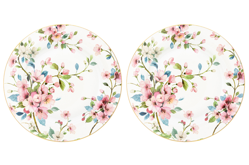 Набор тарелок 2 пр. 26*26*2 см "Яблоневый цвет на белом" NEW BONE CHINA