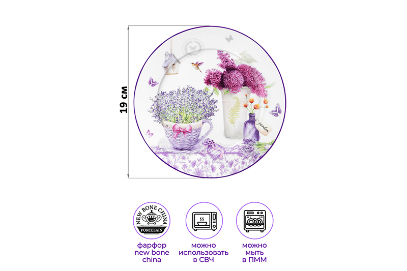 Набор тарелок десертных 6 пр.19*19*2 см "Лаванда" фарфор NEW BONE CHINA