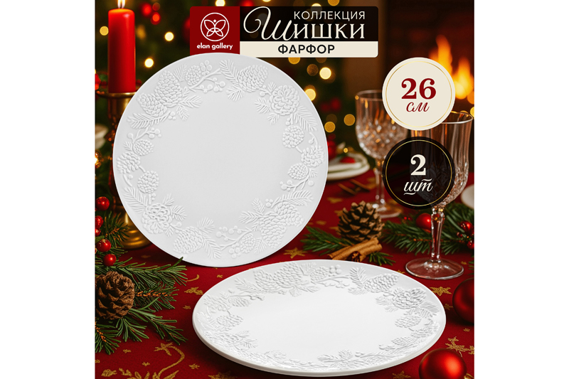 Набор тарелок обеденных 2 пр. 26*26*2,5 см "Шишки"