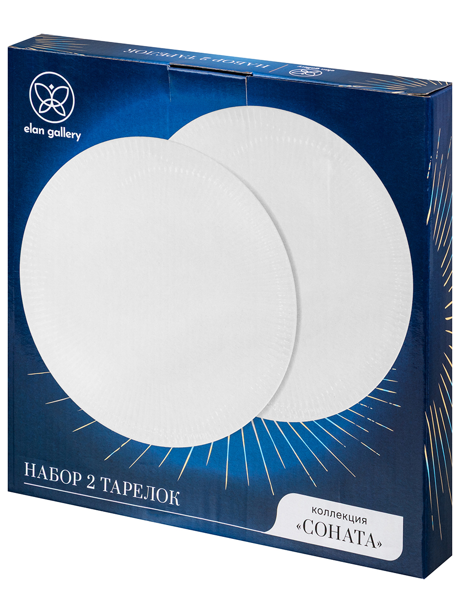 Набор 2 тарелок Elan Gallery "Соната" создан для эстетичной сервировки вашего стола. Размер каждого изделия – 26,5х26,5х2,5 см. Тарелочки выполнены из белого фарфора. Коллекция посуды "Соната" – это воплощение элегантности в фарфоровых формах. Лаконичный рельеф из тонких линий создаёт изысканную игру света на белом фарфоре. Словно классическая музыка, эта коллекция дарит атмосферу утончённости и благородства. Сервировочный набор отлично подойдёт для подачи вторых блюд и закусок. Заполните их пастой и деликатесами из рыбы, красиво выложите нарезку из свежих овощей и фруктов, сыров и яиц. Положите роллы и суши для вкусного перекуса. Блюда помогут преподнести разнообразные десерты, сладости и выпечку. Элегантные тарелочки впишутся в интерьер любой кухни или столовой. Беречь от резких перепадов температур и механических повреждений. Не рекомендуется применять абразивные моющие средства. Комплект подходит для использования в микроволновой печи и посудомоечной машине. Поставляется в стильной картонной коробке с логотипом бренда. Станет приятным подарком на праздник – благодаря красивой коробочке не понадобится подарочная упаковка. В коллекции бренда Элан Галерея можно найти много красивого кухонного и столового инвентаря, а также собрать сервиз на свой вкус. Коллекция "Соната" от Elan Gallery придаст элегантности повседневной сервировке и станет украшением праздничного стола!