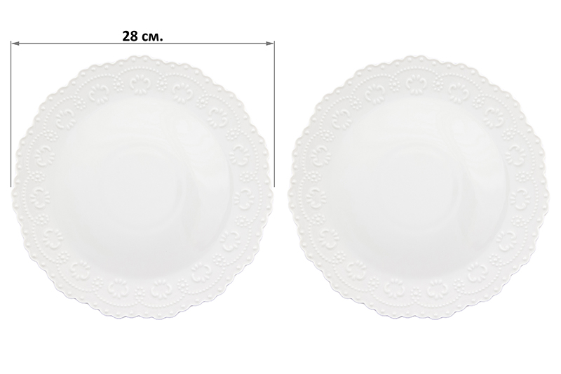 Набор тарелок обеденных 2 пр. 28*28*2,5 см "Белый узор" с ажурными краями, фарфор