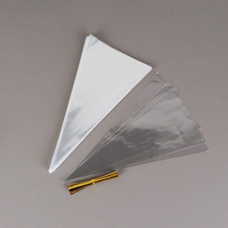 Пакет подарочный конус набор 100 штук 30х16 см / TG1630 /уп 50/100 пакетов+100 зажимов