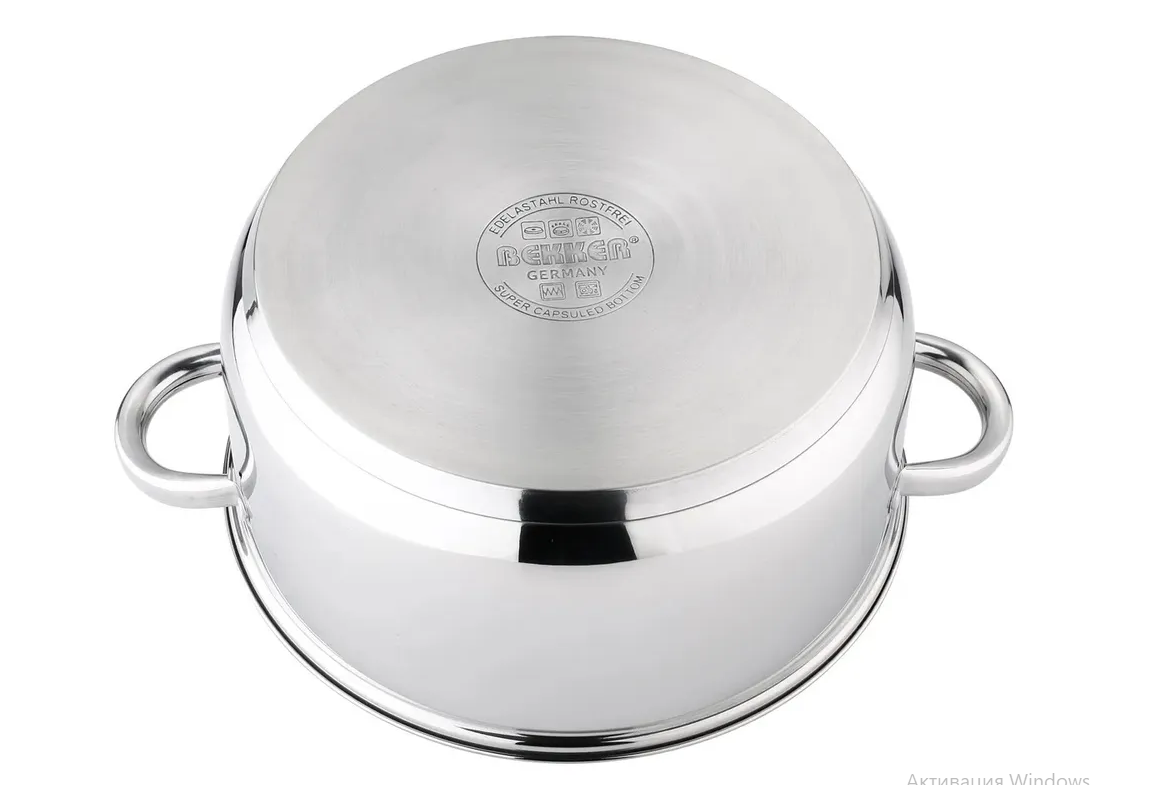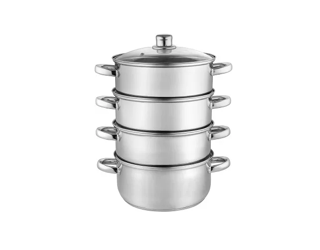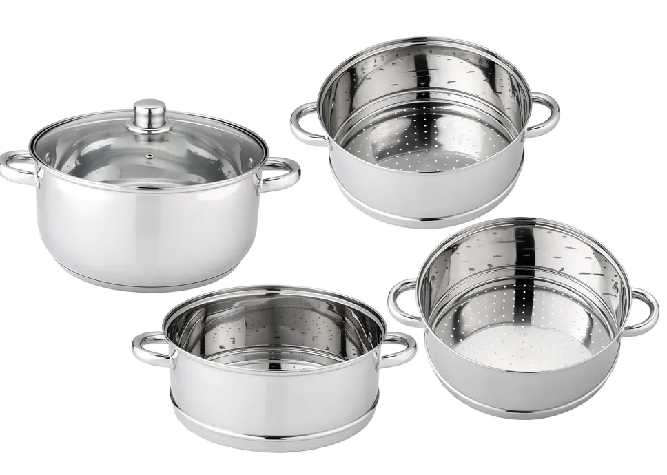 Кастрюля: Ø 30 см / 10,6 л., 3 пароварки: Ø 30 см., толщина стенки: 0,5 мм., толщина дна: 2,5 мм., диаметр дна: Ø 25,7 см., Высота кастрюли: 15 см., высота пароварок: 12 см., поверхность зеркальная. Ручки из нержавеющей стали. Крышка стеклянная. Дно капсулированное. Подходит для использования на всех типах плит. Подходит для чистки в посудомоечной машине. Состав: нержавеющая сталь.