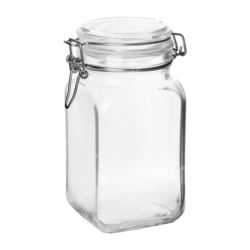 Банка стеклянная Кремлин 1350мл с метал.клипсой+пласт.уплотн. индивид/упак (уп.6)