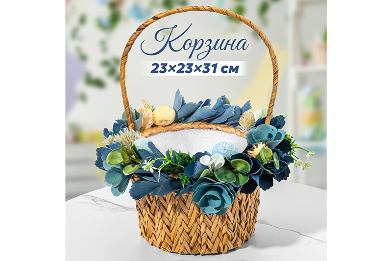 Корзинка «Тиффани» от Elan Gallery станет оригинальным дополнением вашего интерьера. Размер изделия – 23х23х31 см, внутренний размер – 16х16х12 см. Её кайма украшена композицией из сухоцветов, декоративных цветочков и искусственных веточек. Выполнена в оттенках синего, жёлтого и зелёного. Посреди цветов расположились искусственные перепелиные яички, украшенные золотистыми элементами. Светлая Пасха – один из главных праздников весны! Мы разработали коллекцию сезонных товаров для дома, которые помогут создать радостную и уютную атмосферу в квартире или на даче. Пасхальный декор преобразит домашний интерьер и поможет встретить праздник в кругу любимых. Поставьте изделие на стол, полку или подоконник, повесьте на дверь, стену или шкаф, чтобы оно всегда было на виду и радовало глаз. Используйте её, чтобы подать к столу крашеные яйца для традиционных пасхальных катаний. Идеально подойдёт тем, кто предпочитает носить яйца на освящение в красивых изделиях. Задействуйте в тематическом оформлении с фигурками, искусственными букетами или веточками вербы. Посадите в неё пасхальных зверьков: зайчиков, курочек и цыплят. Необычный элемент декора найдёт место в любой части вашей квартиры: в прихожей, гостиной, столовой или спальне. Это изящный и лёгкий способ добавить эстетики любому помещению. В коллекции бренда Элан Галерея вы найдёте множество как ярких, так и нежных декоративных украшений – каждый обязательно подберёт сувенир на свой вкус. Они станут чудесным подарком для родных, близких и коллег. Наполните пространство вокруг себя радостью и весенним настроением! /
