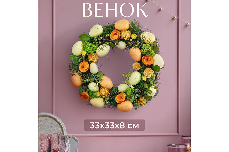 Венок «Оранжевый всплеск» от Elan Gallery станет изящным дополнением вашего интерьера. Размер изделия – 33х33х8 см. Представляет собой композицию из сухоцветов, декоративных цветочков и искусственных веточек. Выполнен в оттенках оранжевого, зелёного и жёлтого. Посреди цветов расположились искусственные, но очень реалистичные перепелиные яички. Не имеет петельки для подвешивания. Светлая Пасха – один из главных праздников весны! Мы разработали коллекцию сезонных товаров для дома, которые помогут создать радостную и уютную атмосферу в квартире или на даче. Пасхальный декор преобразит домашний интерьер и поможет встретить праздник в кругу любимых. Поставьте его на стол, полку или подоконник, оперев о стенку или окно. Повесьте на дверь, шкаф или свободный крючок, чтобы изделие всегда было на виду и радовало глаз. Сделайте частью праздничного стола, чтобы привнести ощущение чуда. Задействуйте в тематическом оформлении с фигурками, статуэтками и венками. Посадите в его центр пасхальных зверьков: зайчиков, курочек и цыплят. Необычный элемент декора найдёт место в любой части вашей квартиры: в прихожей, гостиной, столовой и спальне. Это изящный и лёгкий способ добавить эстетики любому помещению. В коллекции бренда Элан Галерея вы найдёте множество как ярких, так и нежных декоративных украшений – каждый обязательно подберёт сувенир на свой вкус. Они станут чудесным подарком для родных, близких и коллег. Наполните пространство вокруг себя радостью и весенним настроением! /
