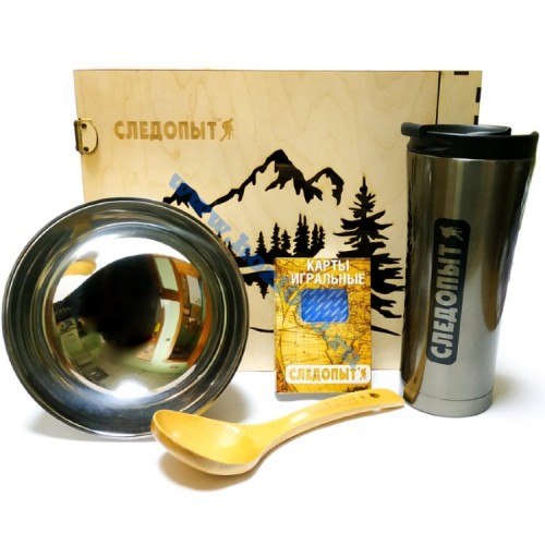 Подарочный набор "Следопыт-Пикник" (термокружка, миска, стол. приборы, игральн. карты)