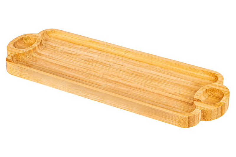 Сервировочный поднос от Elan Gallery предназначен для эстетичной подачи к столу. Размер изделия – 39х14х2 см, внутренний размер – 32х12,5 см. Выполнен из натурального бамбука и оснащён бортиками, которые обеспечат устойчивость посуды и предотвратят соскальзывание угощений. Используйте его для удобной сервировки готовых блюд и разнообразных напитков. Деревянная подставка также защитит поверхности столов и столиков от воздействия высоких температур. Подходит для использования в качестве сервировочной доски: прочная поверхность позволит подавать закуски без дополнительной посуды. За завтраком порадуйте себя бутербродами с сыром или колбасной нарезкой. Красиво преподнесите большие порции орешков, сухофруктов или канапе на праздничной вечеринке. Проведите уютное чаепитие, задействовав большую тарелку в качестве конфетницы: заполните её вашими любимыми сладостями, конфетами и десертами. Натуральный цвет дерева и мягкая форма гармонично впишут поднос в интерьер любой кухни, столовой или гостиной, делая его не только функциональным, но и декоративным элементом вашего кухонного инвентаря. Не рекомендуется применять абразивные моющие средства. Не подходит для замачивания, использования в посудомоечной машине и микроволновой печи. После мытья тщательно протрите поверхность сухой тканью. Хранить вдали от нагревательных приборов при нормальном уровне влажности. Универсальный поднос станет оригинальным подарком для каждого, кто ценит не только практичность, но и привлекательность. В коллекции бренда Элан Галерея вы найдёте разнообразную столовую утварь, которая поможет сделать сервировку удобной и стильной.