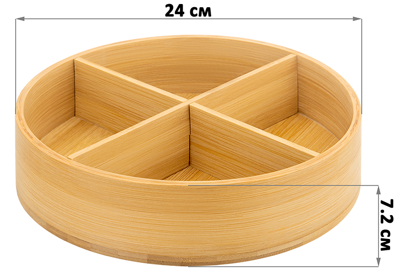 Подставка бамбуковая крутящаяся 24*24*7,2 см с 4-мя секциями
