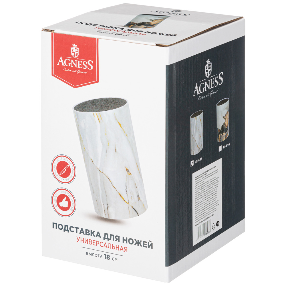 Подставка для ножей – необходимый аксессуар на каждой кухне. Подставка AGNESS с наполнителем легко и удобно решает проблему хранения ножей, защищая лезвия ножей от загрязнения. Преимущества подставки AGNESS: