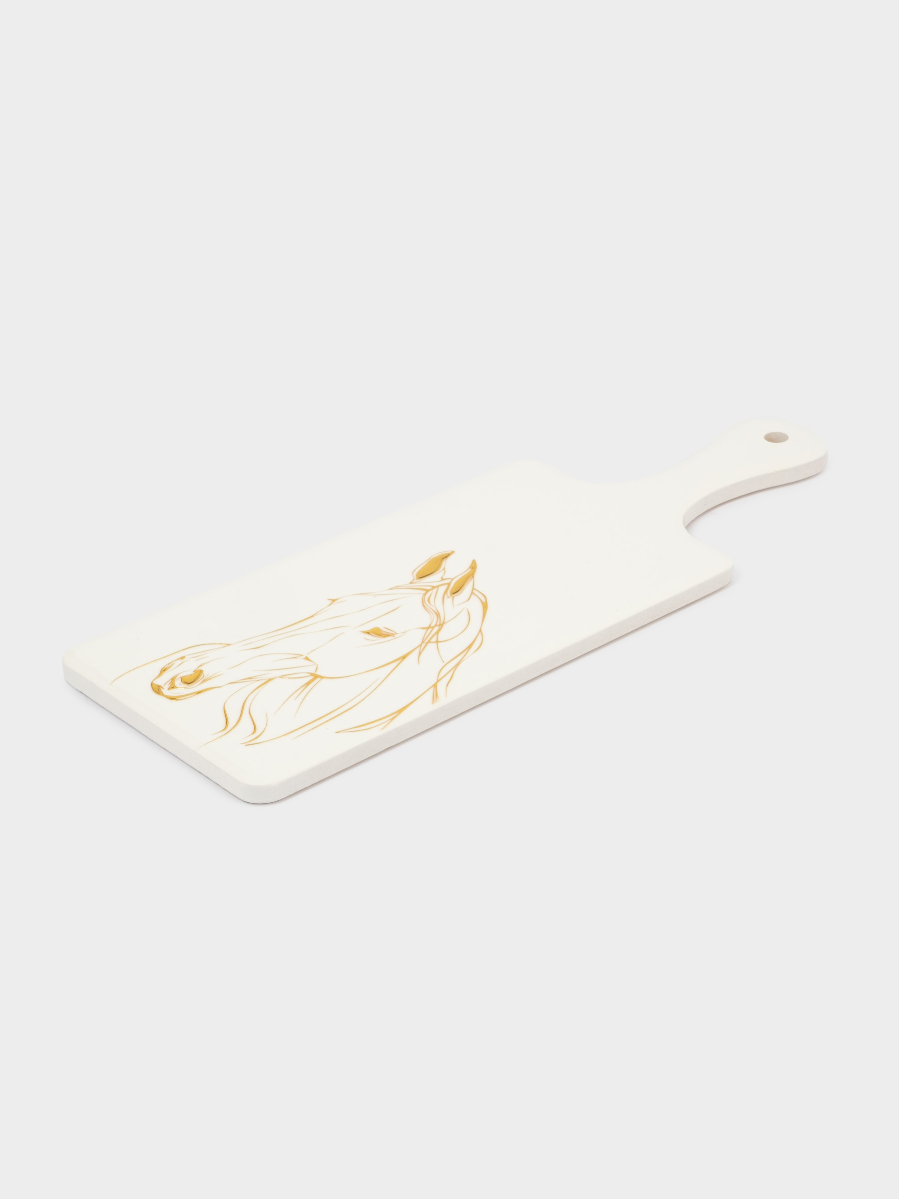 Подставка под горячее, 12х33 см, керамика/пробка, с ручкой, белая, Лошадь, Horse
