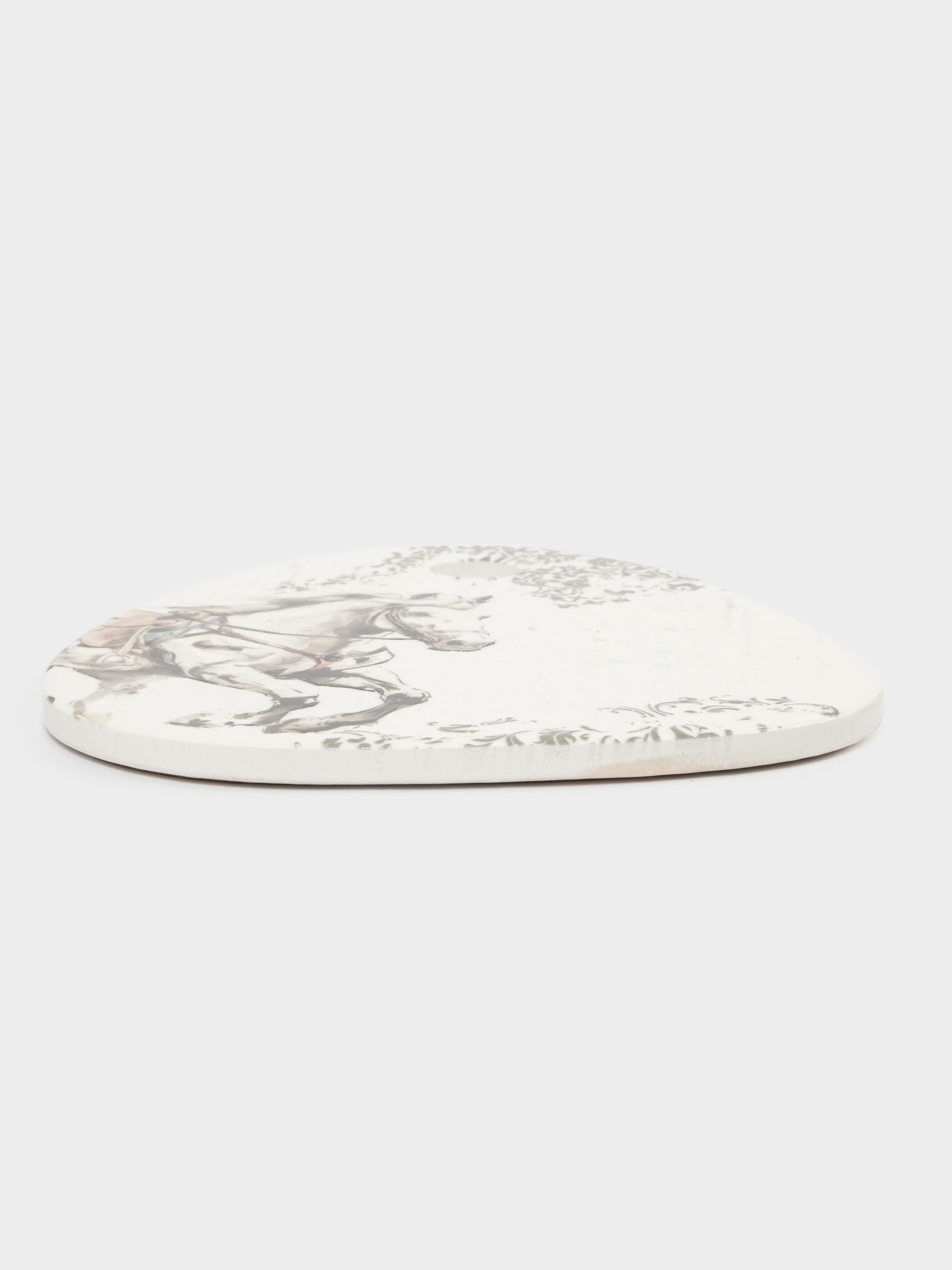 Подставка под горячее, 15x20 см, керамика/пробка, треугольник, белая, Конь, White horse