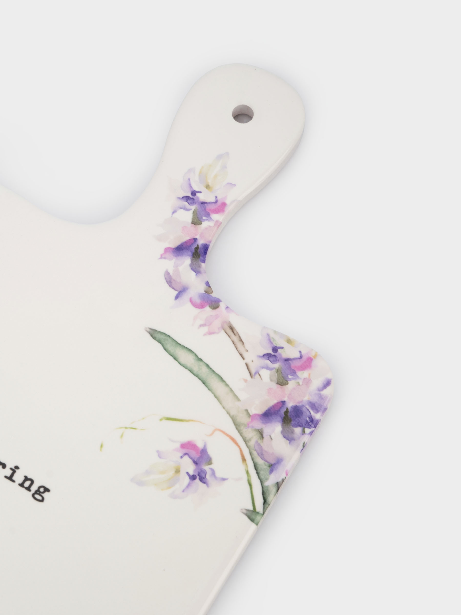 Подставка под горячее, 15x26 см, с ручкой, керамика/пробка, белая, Сирень, Meadow