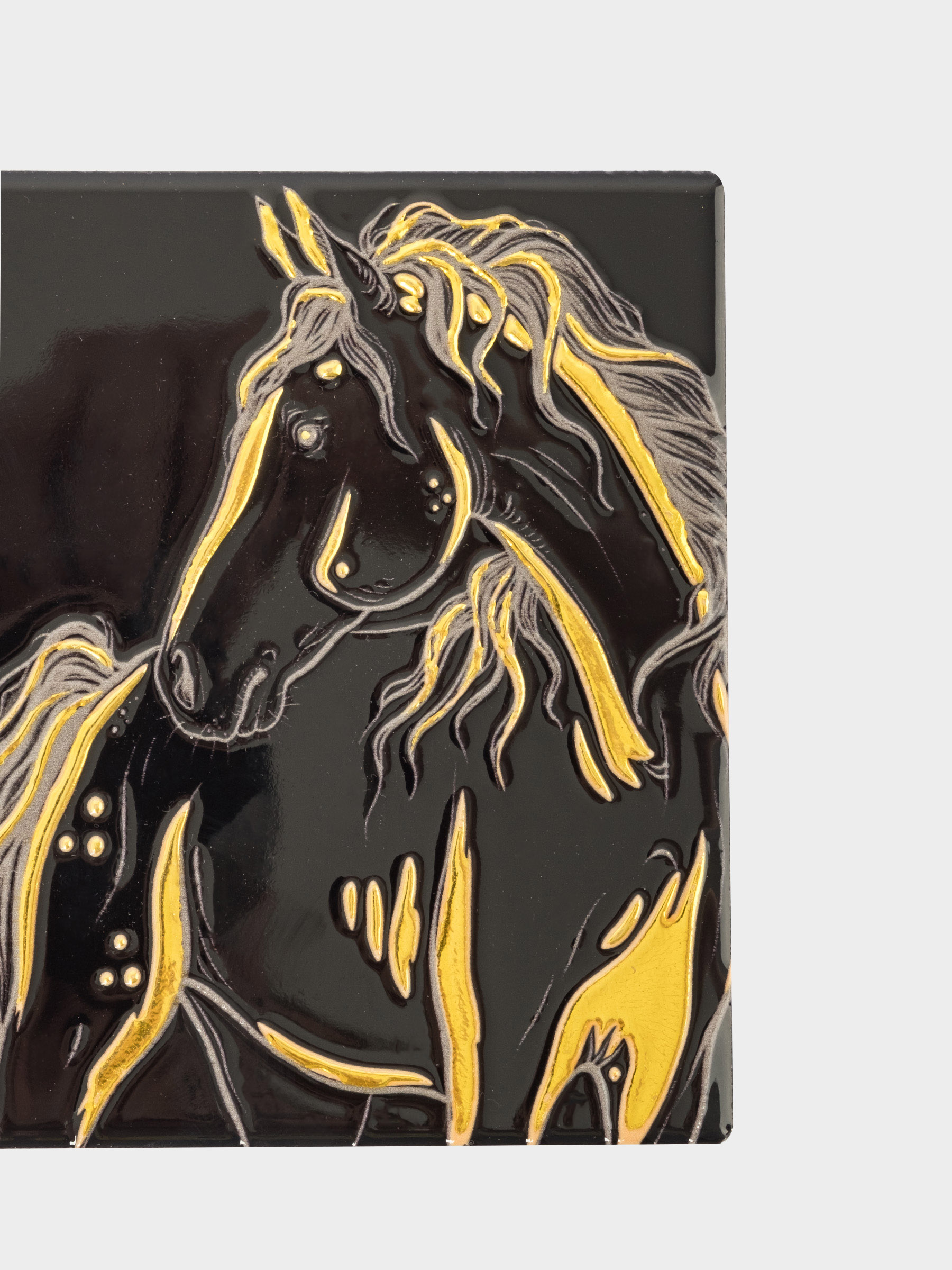 Подставка под кружку, 11х11 см, керамика/пробка, квадратная, черная, Лошадь, Horse