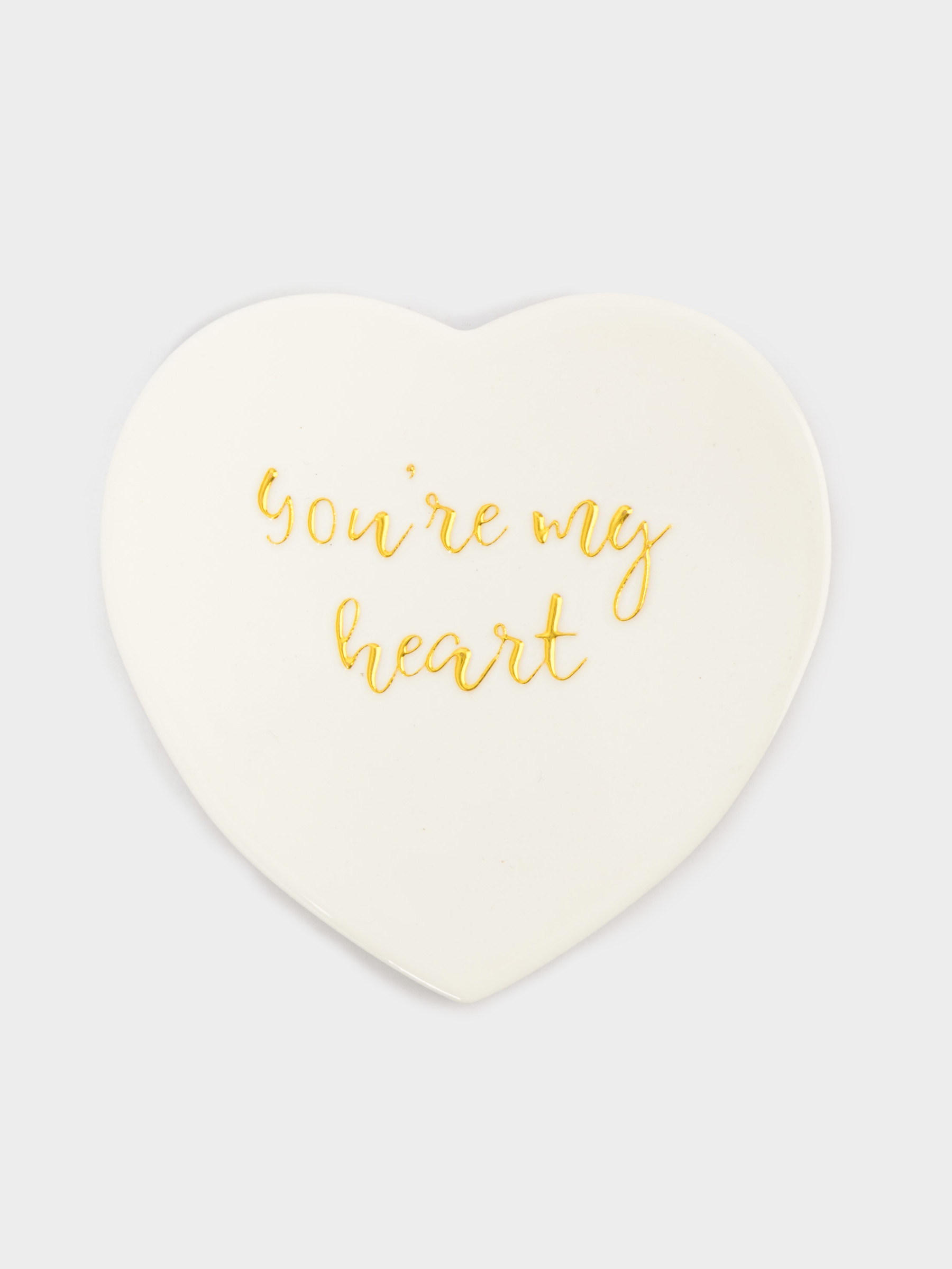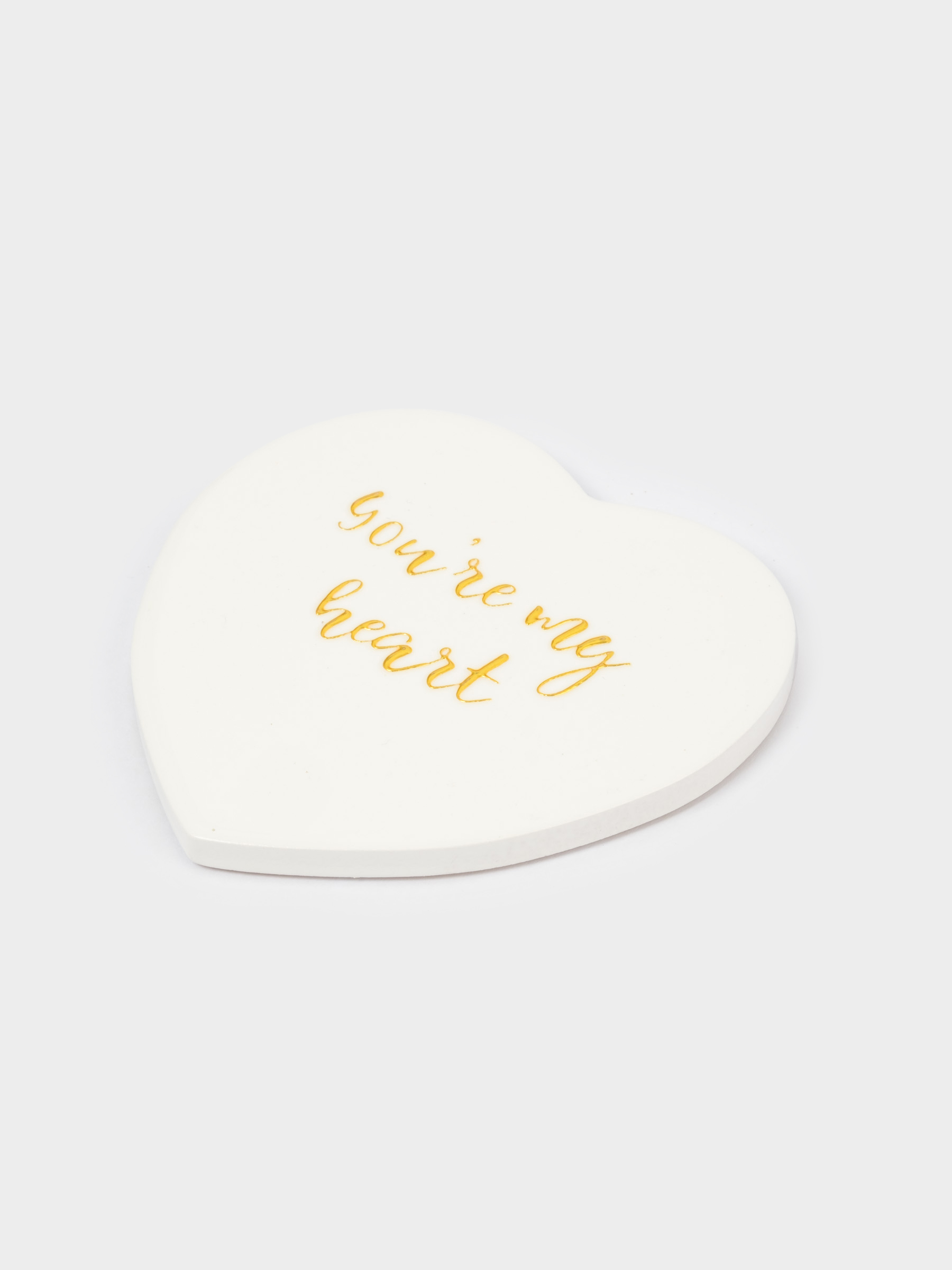Подставка под кружку, 13х9 см, керамика/пробка, сердце, белая, Надпись