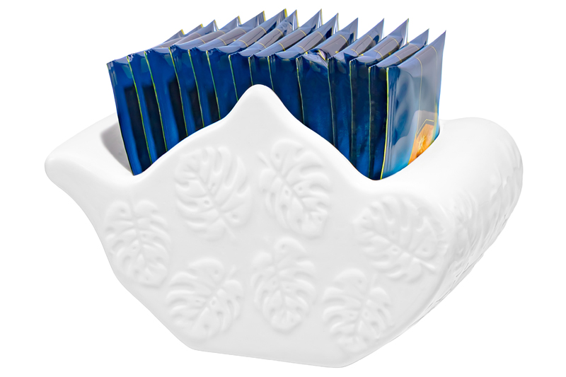 Подставка из серии «Тропики» от Elan Gallery предназначена для эстетичной сервировки вашего стола. Размер изделия – 12х9х8 см, объём — 300 мл. Выполнена из высококачественного фарфора и украшена рельефным узором в виде тропических листьев. Она идеально подойдёт для подачи чайных пакетиков, пакетиков с сахаром и солью. Используйте её как органайзер для салфеток, зубочисток и других кухонных принадлежностей. Поможет сервировать разнообразные мелкие закуски. Наполните её оливками, орехами, сухофруктами и ягодами. Изящно подайте в ней порцию клубники, чтобы разнообразить свой стол. Подойдёт для хранения и сервировки сладостей – конфет, леденцов и мармелада. Не рекомендуется применять абразивные моющие средства. Подходит для использования в посудомоечной машине и микроволновой печи. Поставляется в дизайнерской картонной коробке – благодаря ей вам не потребуется дополнительная подарочная упаковка. Фарфоровая сервировочная посуда станет оригинальным подарком для хозяйки, ценящей не только практичность, но и привлекательность. Серия «Тропики» от бренда Elan Gallery станет украшением любого кухонного инвентаря и позволит собрать сервиз в едином стиле! /