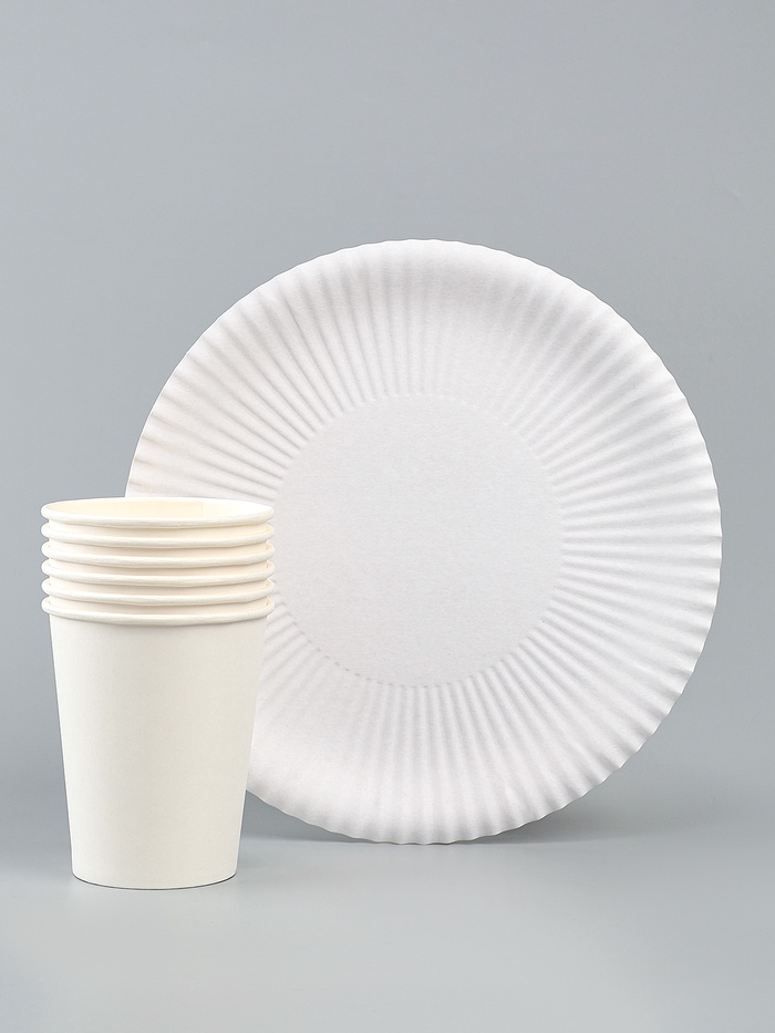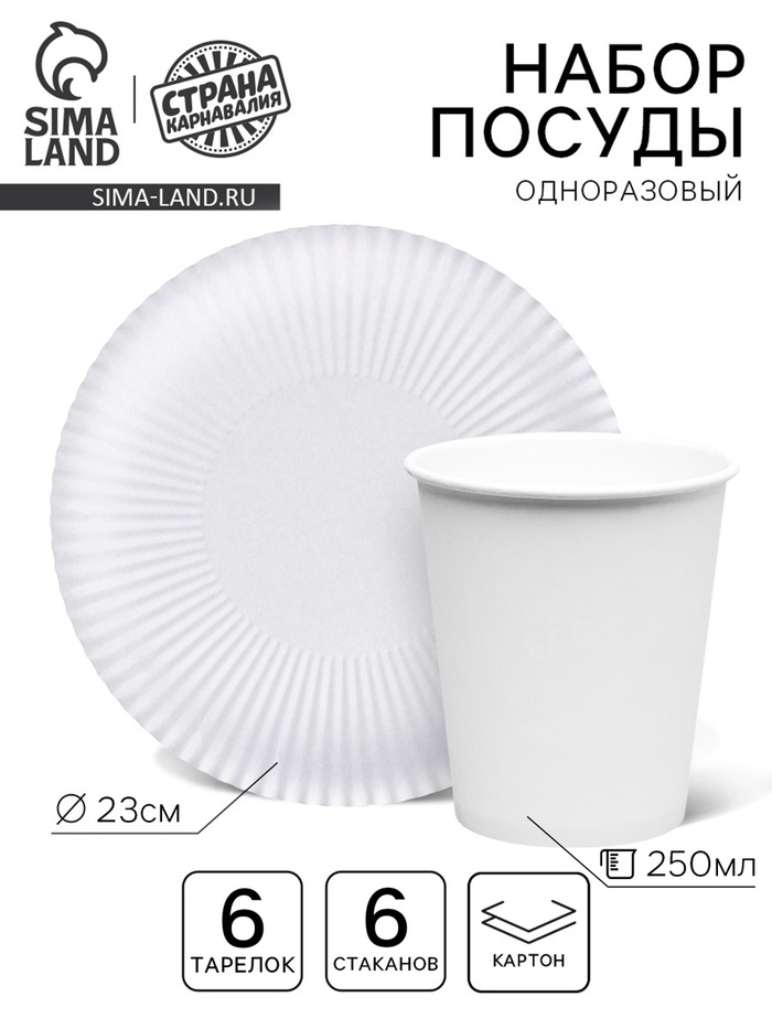 Посуда бумажная одноразовая «Белый», 6 стаканов, 6 тарелок