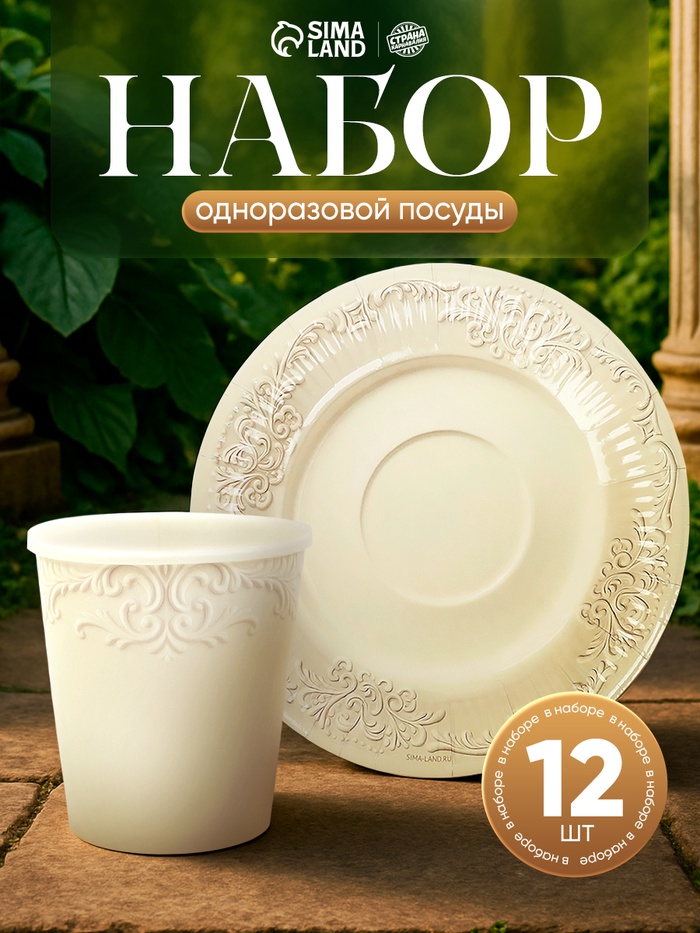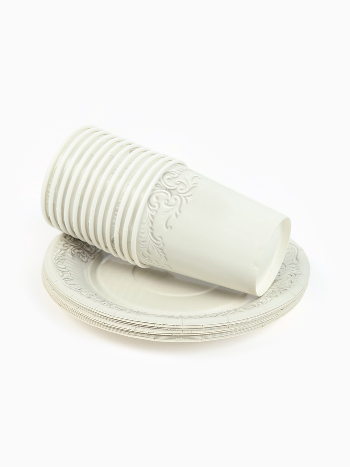 Посуда бумажная одноразовая «Керамика» белая, на 12 персон
