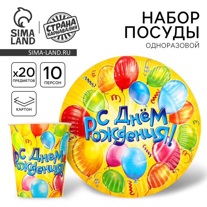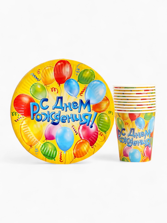 Посуда бумажная одноразовая «С днем рождения», 10 стаканов, 10 тарелок