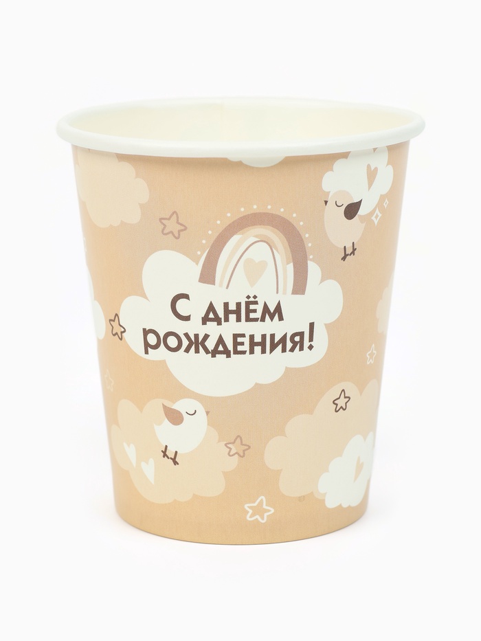Посуда бумажная одноразовая «С Днём рождения», бежевая, на 12 персон