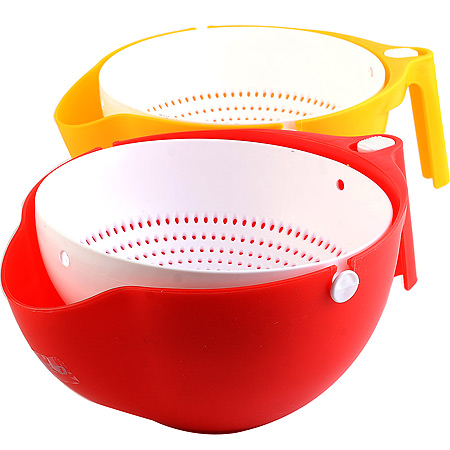Дуршлаг с миской - функциональное приспособление для промывки крупы, макарон, мытья овощей и фруктов. Посуда выполнена из полипропилена. Дуршлаг можно вытащить, повернув на 90 грасов и использовать отдельно от миски, благодаря 3-м маленьким ножкам он устойкиво стоит на поверхности без миски. Миска снабжена удобной ручкой, а также механизмом фиксации дуршлага. Вся конструкция поможет дозайкам управляться одной рукой. Миска имеет удобный носик для слива жидкости, благодаря которому Вы не испачкаете окружающее пространство.
