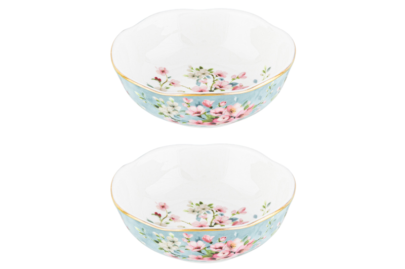 Розетка д/варенья 2 пр. 120 мл 9,5*9,5*3 см "Яблоневый цвет на голубом" NEW BONE CHINA