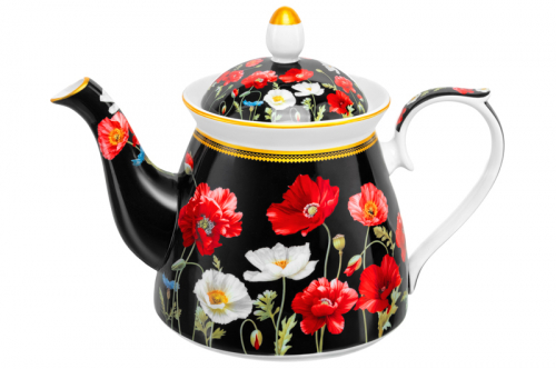 Сахарница 250 мл 9*9*10 см "Маки на черном" + ложка NEW BONE CHINA