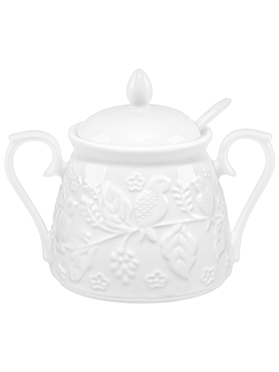 Сахарница 350 мл 14,5*10*11,5 см "Птички на ветке", с ложкой