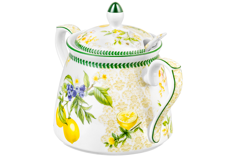 Сахарница 400 мл 15*10*11,5 см "Лимоны" с ложкой NEW BONE CHINA