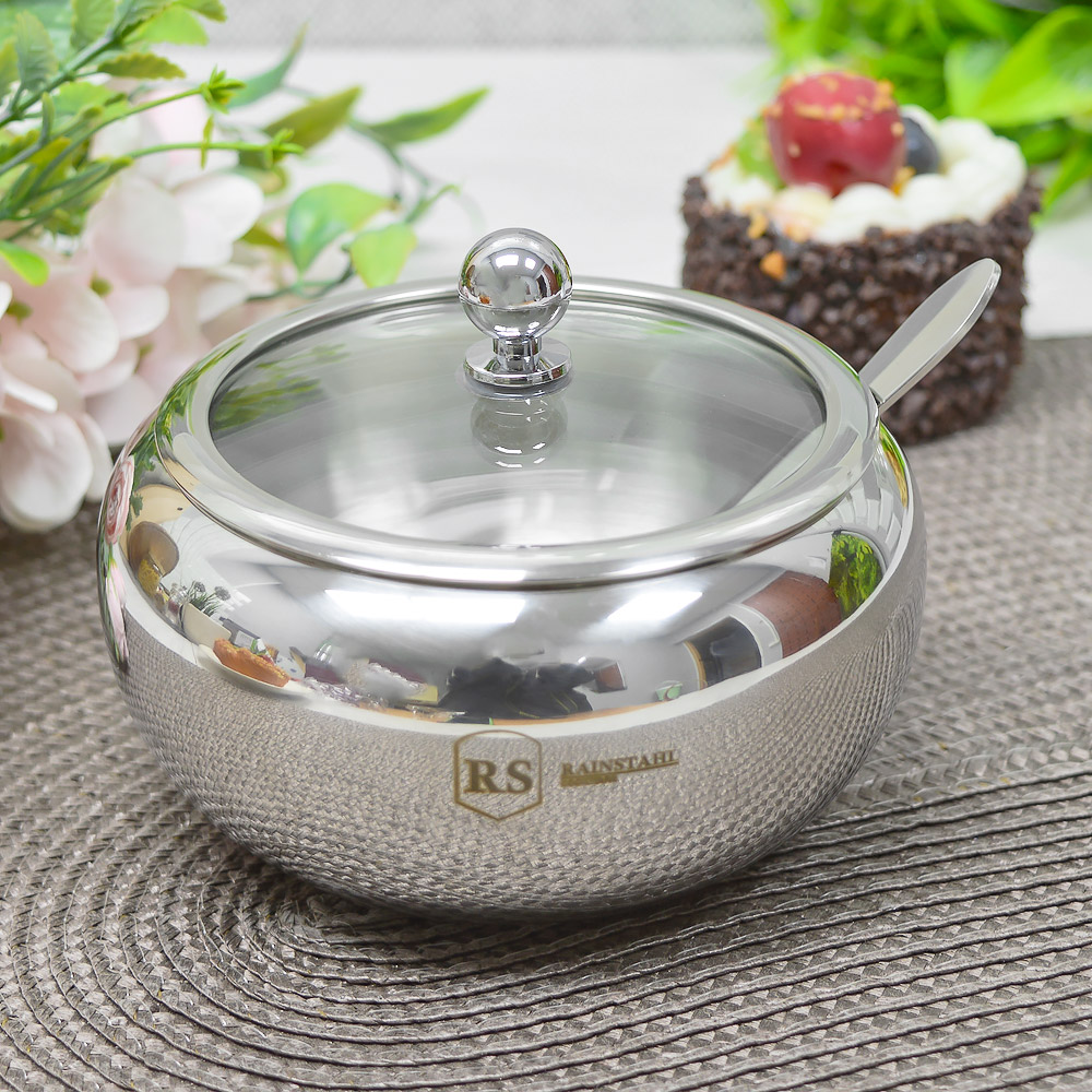 Сахарница 460мл с ложкой нерж и стеклянной крышкой