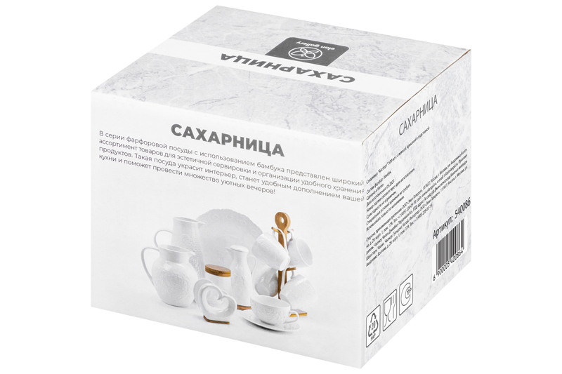 Сахарница из серии «Айсберг» объемом 500 мл с деревянной крышкой, фарфоровой ложкой и деревянной подставкой выполнена из высококачественного фарфора и натурального бамбука. Теплое цветовое решение, изящный рельефный рисунок на фарфоре и удобство использования делают эту сахарницу желанным подарком любой хозяйке. У сахарницы широкое горло, которое удобно мыть, а бамбуковая крышка не позволит сахару намокнуть. В серии фарфоровой посуды с использованием бамбука представлен широкий ассортимент товаров для сервировки стола, которые, несомненно, впишутся в любой интерьер благодаря лаконичному дизайну, натуральным материалам и высокой функциональности. Такому подарку будет рада любая хозяйка!
