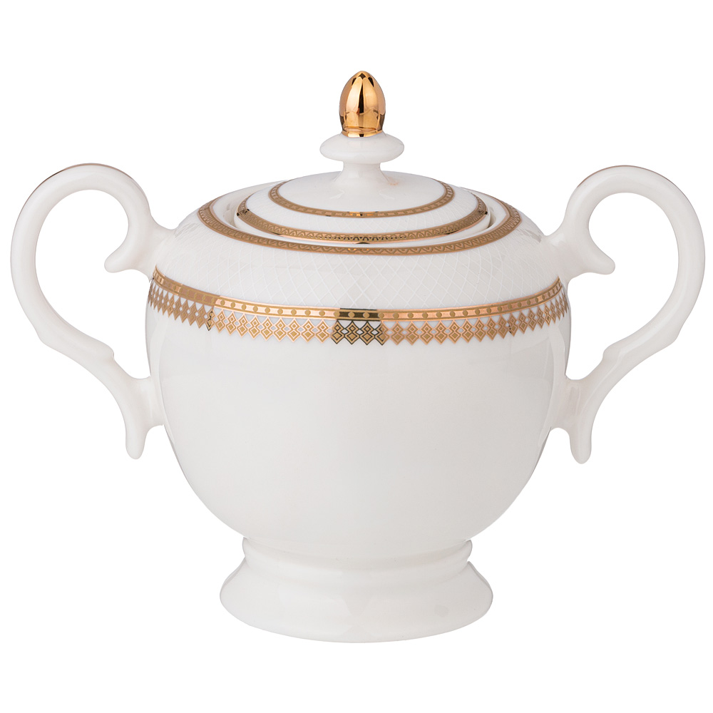 ТМ LEFARD Сахарница "Праздничная" для торжественных застолий и семейных обедов. Изысканный фарфор Bone Pocelain с эффектом костяного фафора, тонкий и полупрозрачный, прочный и никогда не темнеет. Утонченный кружевной рельефный орнамент выглядит объемным и привлекательным благодаря различной обработке выпуклых и базовых поверхностей. Изящная золотая обводка придает блеск и торжественность. Эта посуда замечательный подарок на юбилей, день рождения, новоселье, который наверняка пригодится каждой семье, запомнится навсегда и прослужит долгие годы. Дизайнеры торговой марки предлагают чайный и обеденный сервизы и наборы тарелок и чайных пар, чтобы сформировать полную сервировку стола предметами коллекции на 6 или 12 персон.