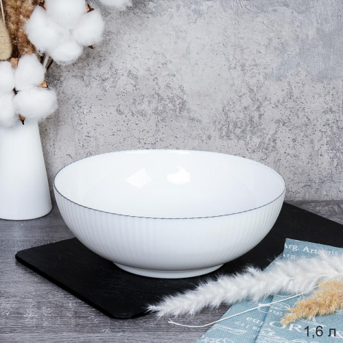 Салатник 1600 мл 203 мм Вертикаль тарелка глубокая серая линия / GR-DKW-80 /уп 36/
