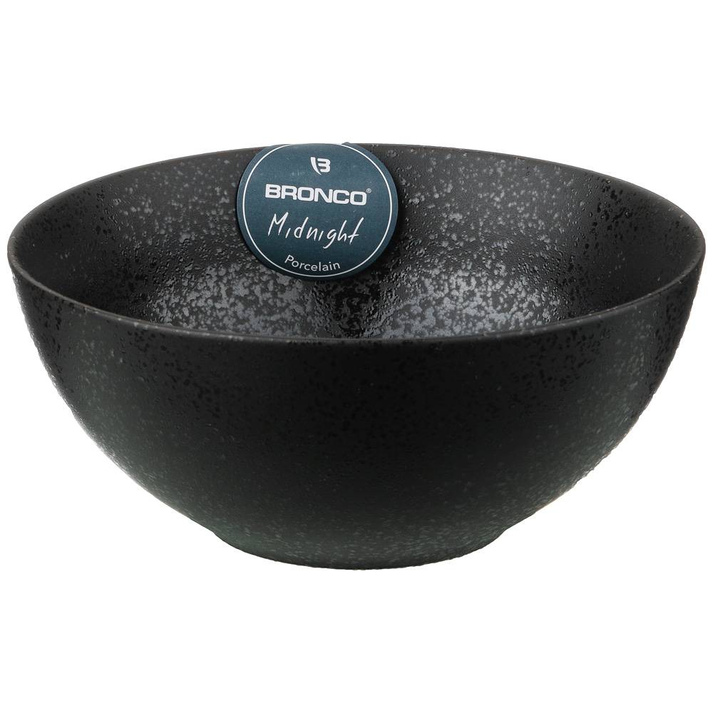 ТМ BRONCO коллекция MIDNIGHT - это запатентованный продукт. Черная поверхность, визуально близкая к чугуну, имеет металлическую текстуру, что придает фарфоровой посуде сдержанный и фундаментальный стиль. Посуда устойчива к царапинам. Нож и вилку можно использовать прямо на поверхности, не царапая глазурь. Черный сдержанный и устойчивый цвет, высокая прочность и долговечность делают эту коллекцию излюбленной покупателями во всем мире. Вся продукция сертифицирована, безопасна для контакта с пищевыми продуктами. Можно использовать в духовом шкафу и микроволновой печи, мыть в посудомоечной машине.