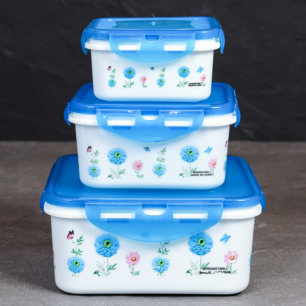 Салатник квадратный 3 штуки с крышками / 131 /уп 96/ 350, 800, 1300 мл