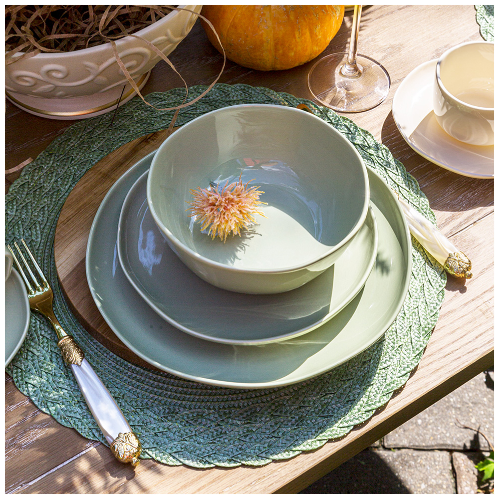 Ультрамодная коллекция TRENDY ТМ LEFARD предлагает свежую цветовую гамму, неординарные «мятые» формы и отличное качество упрочненного фарфора. В коллекции два теплых натуральных цвета – темного зеленого чая или спаржи и кремового или топленого молока, которые прекрасно комбинируются между собой и коллекцией VILLAGE.