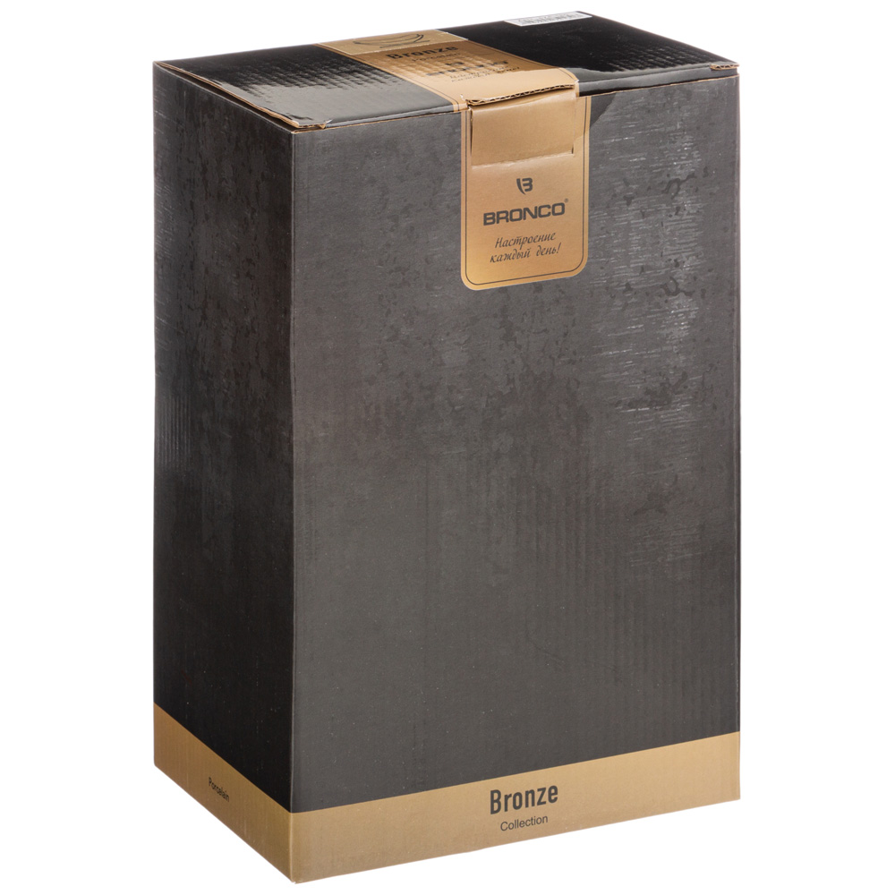 ТМ BRONCO коллекция BRONZE – это ультрамодная посуда из упрочненного фарфора для сервировки стола с элементами из темного бамбука. Для достижения эффекта состаренной античной бронзы используется матовая глазурь темного бронзового цвета. Смелое сочетание современных форм и матовой бронзы креативно и подчеркнет стиль и вкус хозяйки. Коллекция представлена обеденными и закусочными тарелками, салатниками и блюдами разных форм и размеров, посудой для чая и кофе, сервировочными наборами и подставками. Легко накрыть изысканный незабываемый стол. Продукция сертифицирована. Безопасна для контакта с пищевыми продуктами. Фарфоровые изделия можно использовать в микроволновой печи, мыть в посудомоечной машине с применением мягких неабразивных средств.